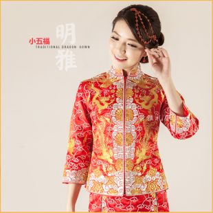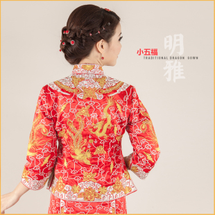 小五福机绣裙褂龙凤褂金银线褂新娘中式 礼服敬酒服旗袍嫁衣可定做