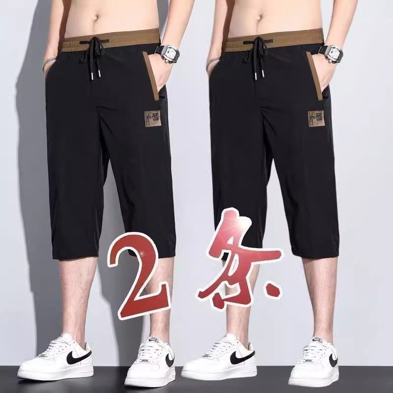 七分裤 冰丝男士 宽松速干运动中裤 直筒薄款 六分短裤 休闲马裤 男夏季