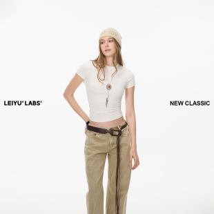新款 T恤女2025年夏季 紧身刺绣上衣 LABS针织小圆领正肩短袖 LEIYU