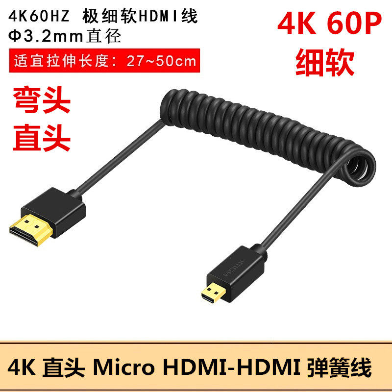 佳能R5 极细3.2mm弹簧线 R6相机MCIROHDMI线4K60P超软0.3短线