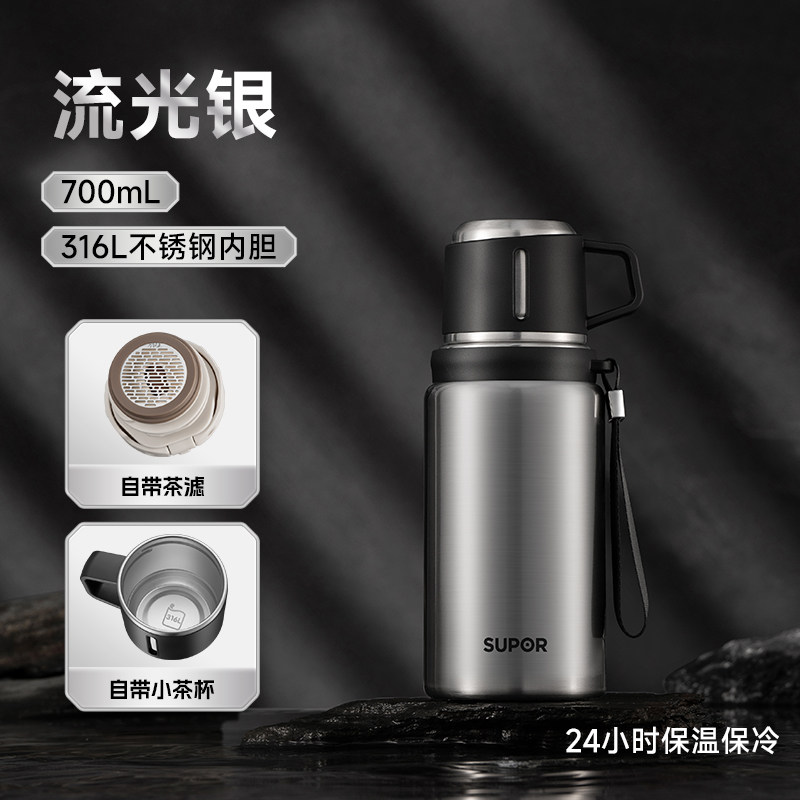 苏泊尔保温杯700ml随享水壶茶杯316L不锈钢双饮KCV70CG10流光银