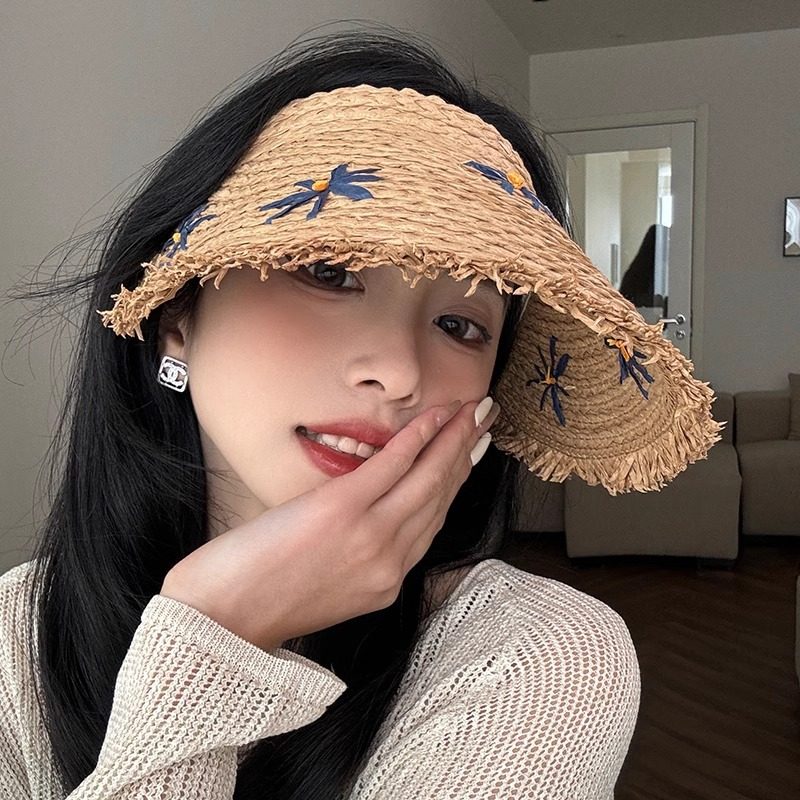 高品质拉菲草编大檐户外防紫外线空顶草帽 设计联名款 LVURT 法国