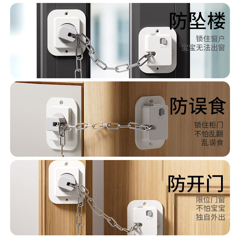 贝得力儿童安全推拉窗锁限位器断桥铝外内开防风卡扣链条锁 包邮