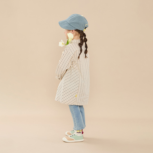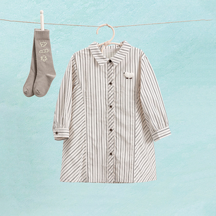 裙子休闲 领纯棉长袖 papa爬爬春季 儿童连衣裙女童条纹衬衫