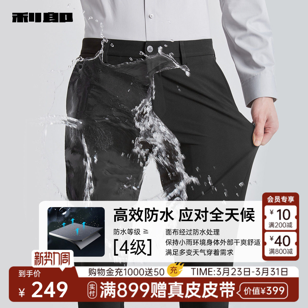 利郎官方商务休闲裤 男士 裤 直筒 子 新款 防水 春季 弹力长裤