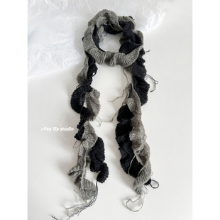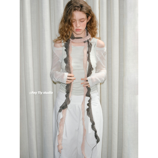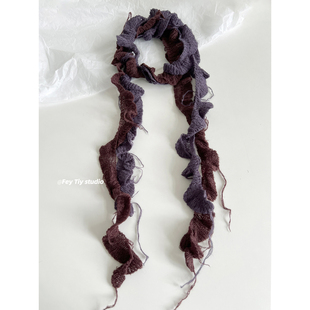 领巾潮 饰窄长款 feytiy 不规则双色针织细长围巾小众轻亚y2k少女装