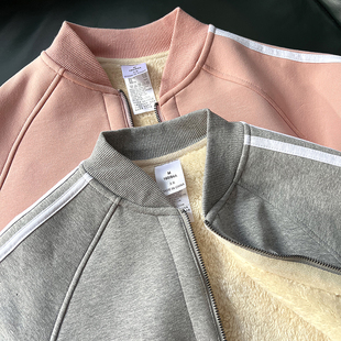 棒球服外套潮 仿羊羔绒拉链开衫 加绒加厚卫衣女2025年秋冬新款 短款