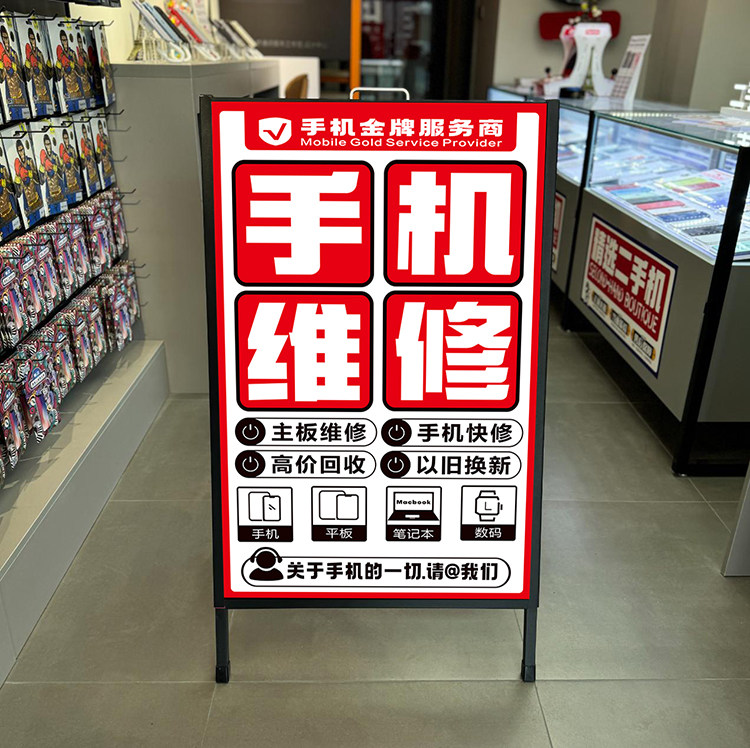 手机维修门店户外广告牌展架立式 落地KT板雪弗板支架二手引流广告