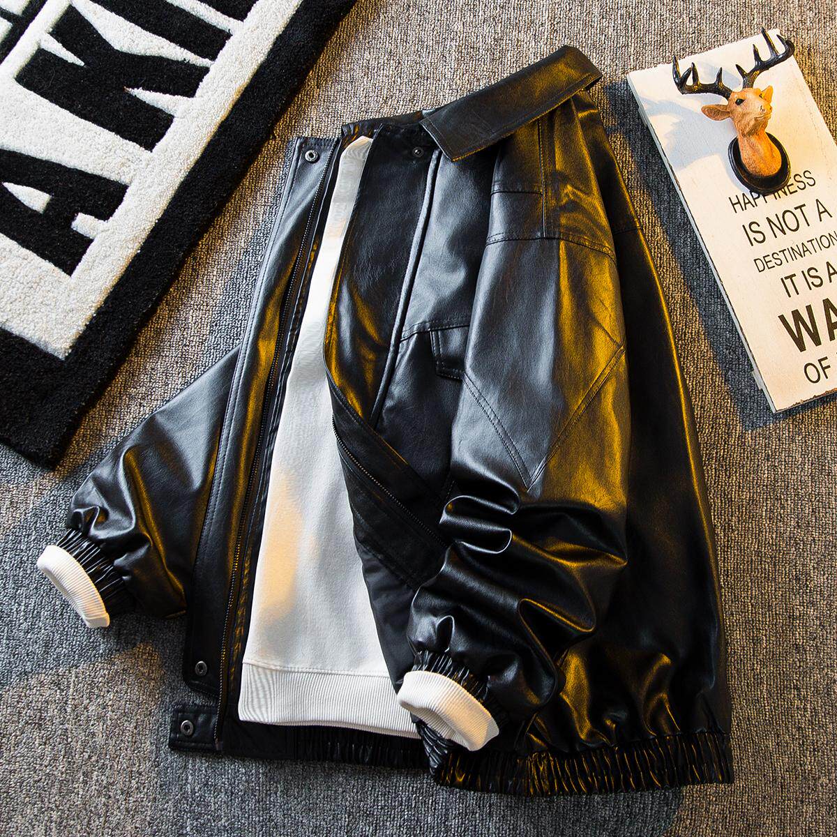 夹克 复古pu皮衣外套男潮流棕色痞帅春秋潮牌工装 男装 vintage美式