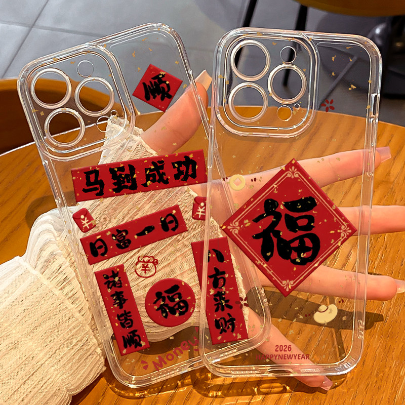 2026马年手机壳苹果16pro新年iphone13proMAX新款 17pro软15promax透明xs福14喜庆11对联plus全包本命年12套8p