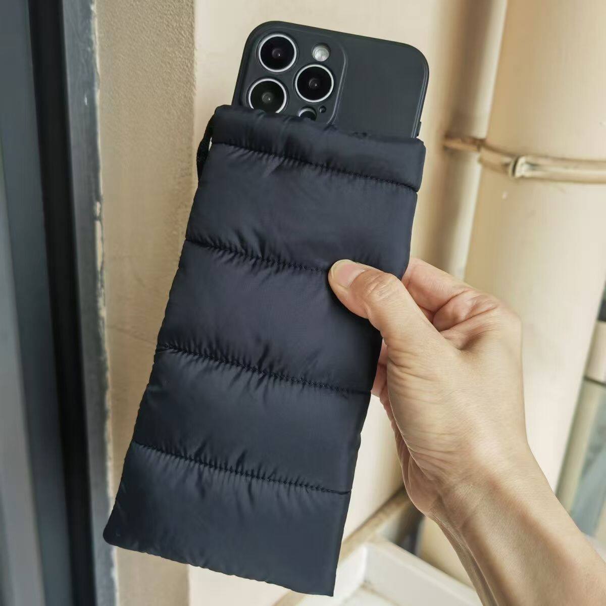 色格双面绒束口收纳袋手机充电宝绒布保护套移动电源包耳机数据线防尘硬盘数码 配件包手机袋子便携