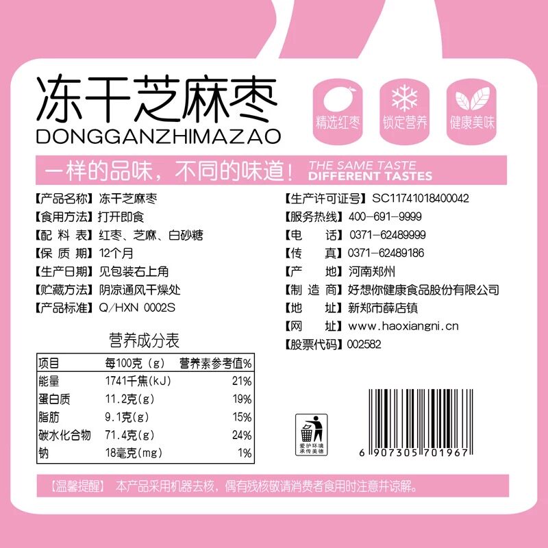 好想你冻干芝麻枣200g脆枣去核红枣香甜酥脆芝麻球零食小吃独立装