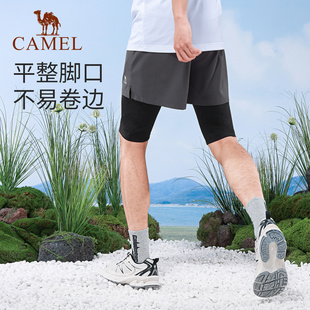 速干透气短款 男款 健身裤 子时尚 骆驼休闲短裤 假两件运动五分裤 夏季