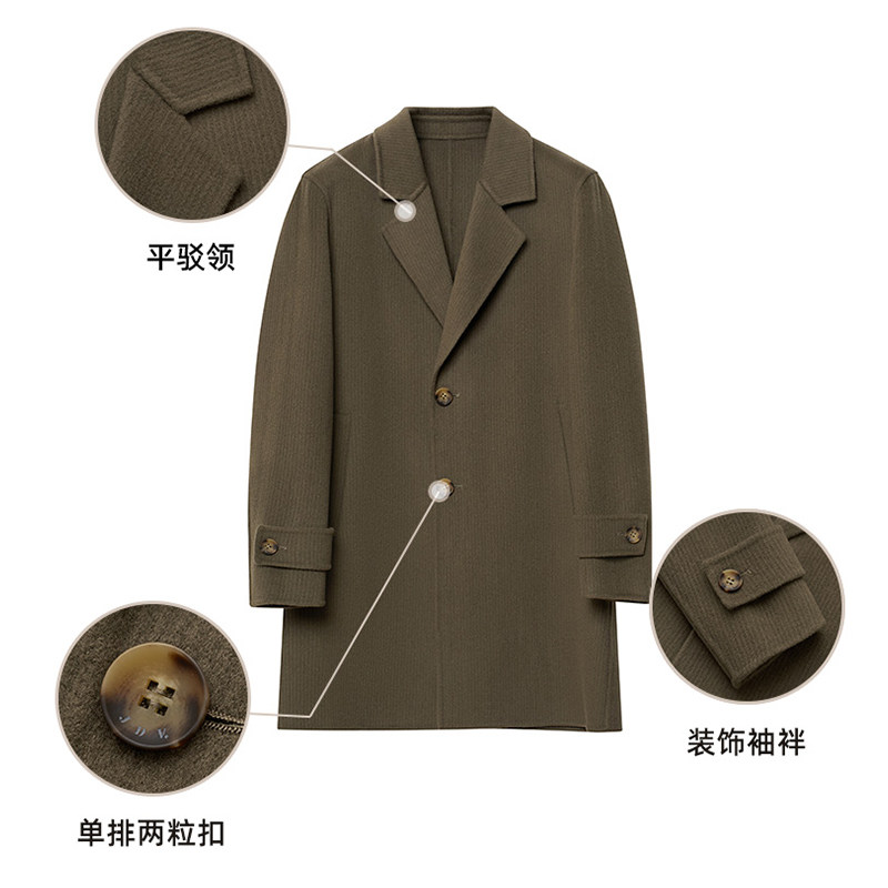 西装 过膝双面羊绒外套 领毛呢子风衣 中长款 纯羊毛双面呢大衣男士