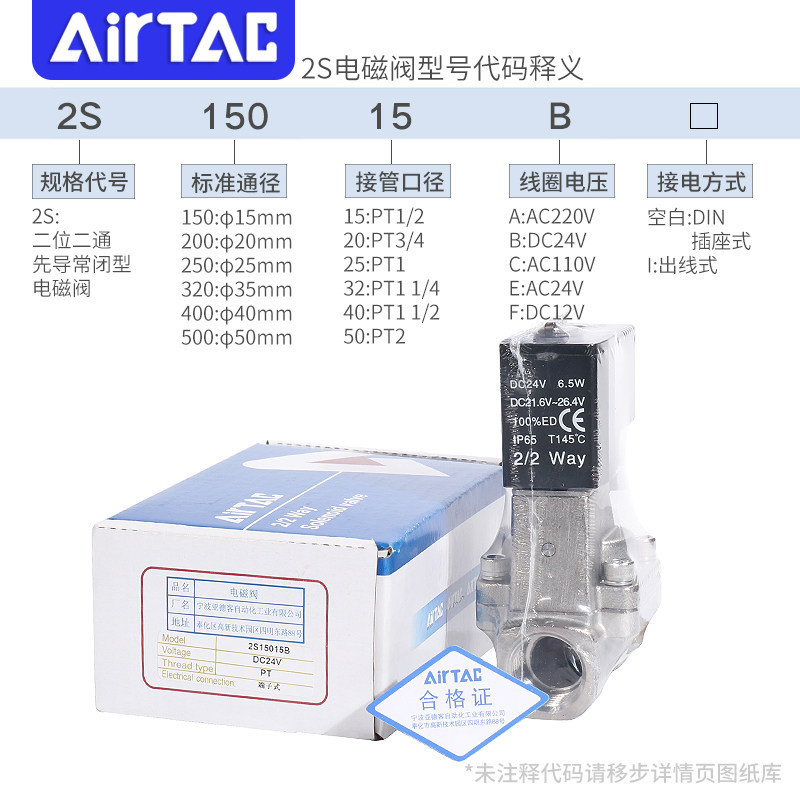 50A 320 500 250 400 亚德客电磁阀水阀2S150 200