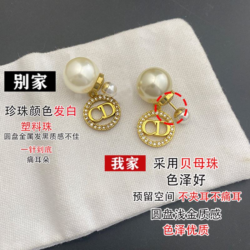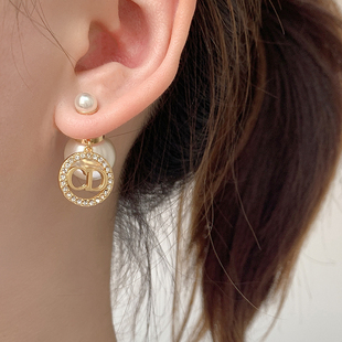 奥米迪奥圆盘镶钻前后款 两戴珍珠耳钉欧美高级感小众设计女耳环
