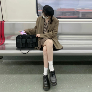 韩版 新款 小个子宽松休闲炸街西服 外套女春秋装 高级感咖色西装