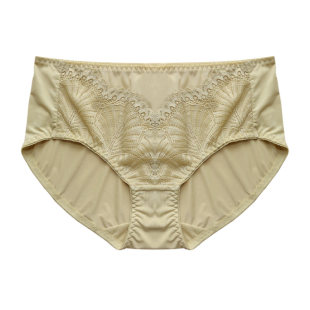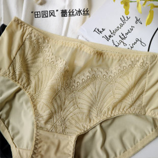 花漾黄牛奶丝拼接蕾丝田园风内裤 衩 女士舒适中腰不夹臀品牌专柜裤
