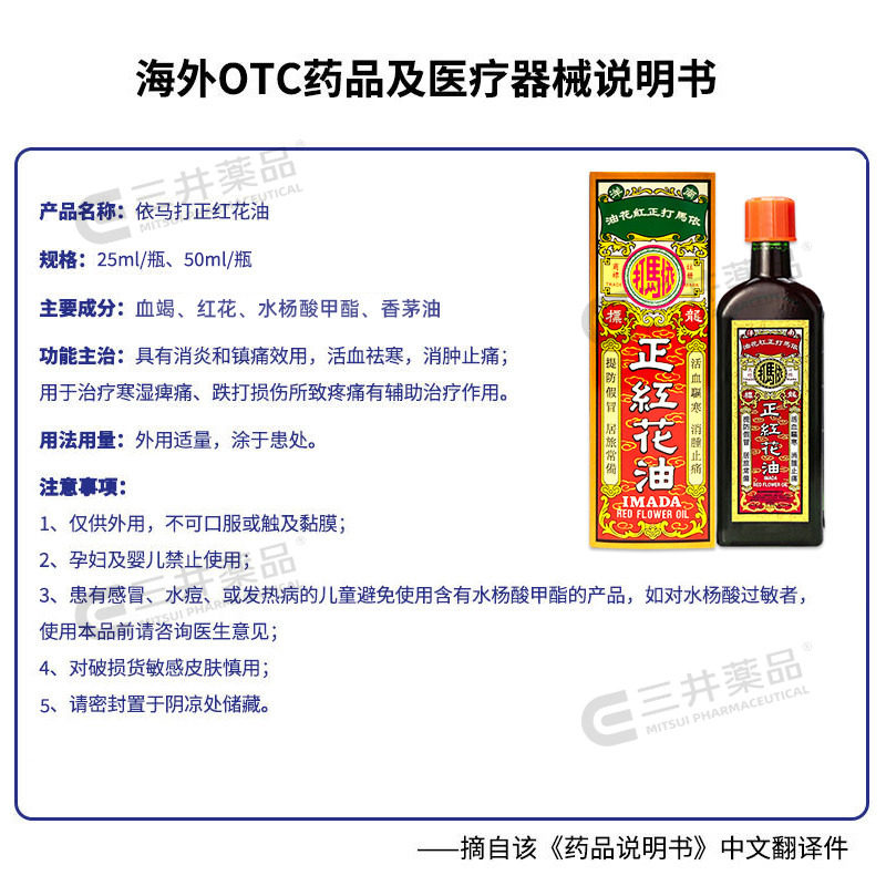 香港依马打正红花油风湿伤痛活血止痛跌打损伤消肿骨痛活络油50ml