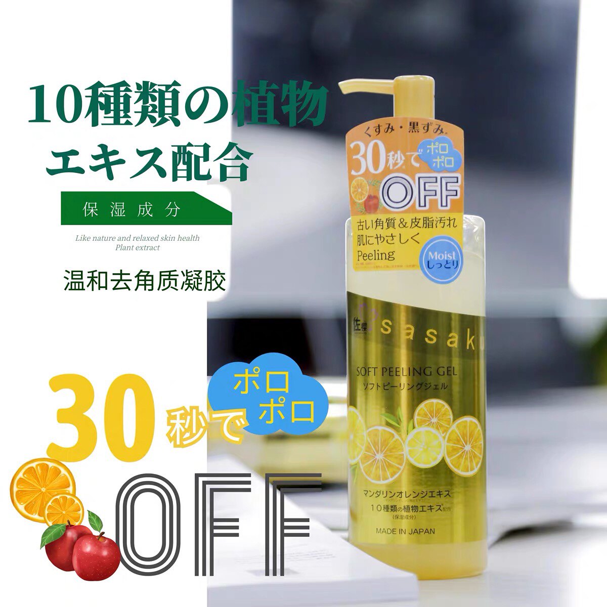 年终优惠~日本sasakura 佐樱去角质凝胶啫喱30秒洗净植物柑橘香