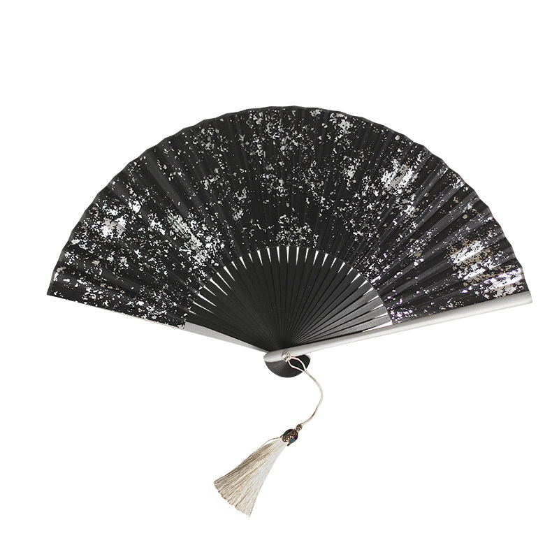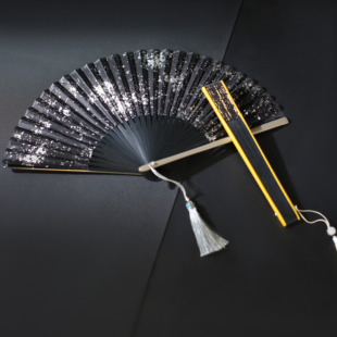 新中式 摄影道具黑色水墨画渐变梅花扇子竹扇晨袍结婚女扇 旗袍古装