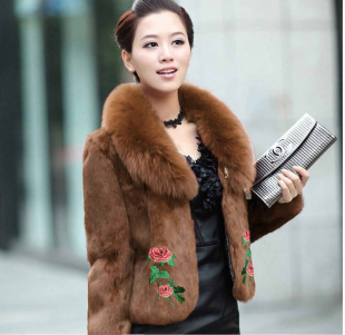 大衣百搭显瘦仿皮 外套仿水貂绒狐狸毛领韩版 秋冬皮草女士修身 短款