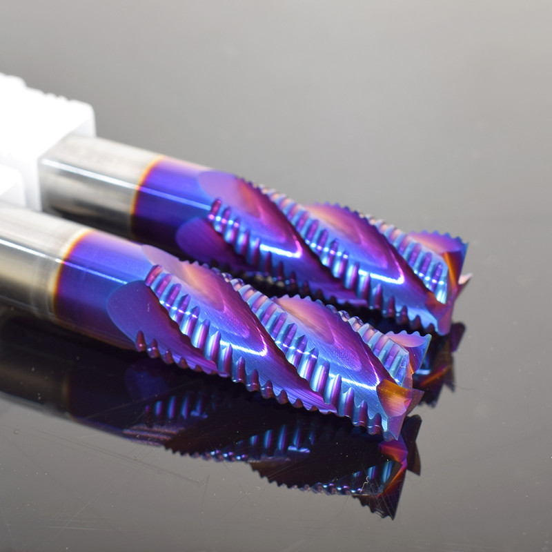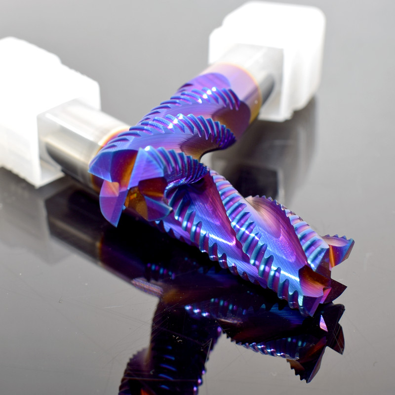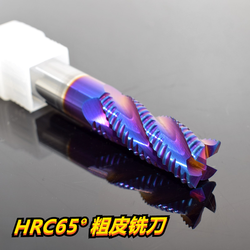 65度钨钢铣刀钢用粗皮刀合金开粗刀4刃蓝色波刃刀加长涂层刀10mm