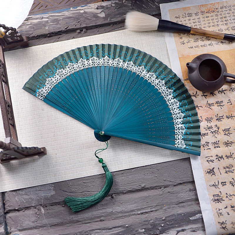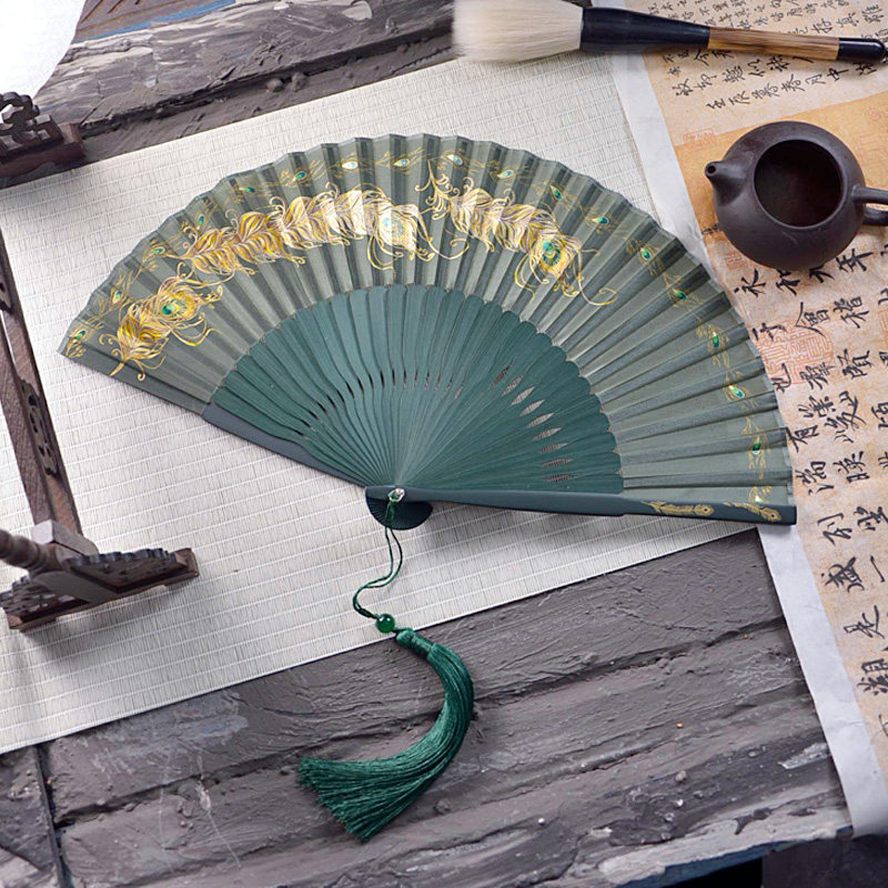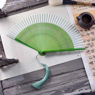 古风扇子夏天便携绿色折扇折叠女式 随身古典中国风汉服旗袍小扇子