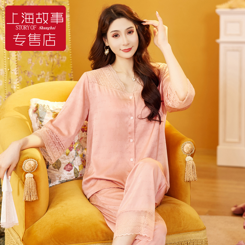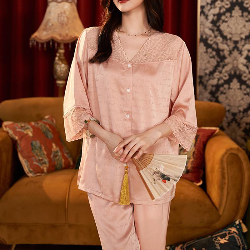 九分裤 时尚 大码 家居服套装 亲肤睡衣套装 长裤 宽松V领 自带胸垫