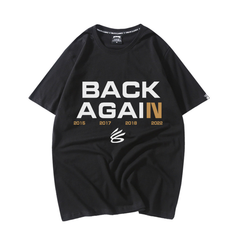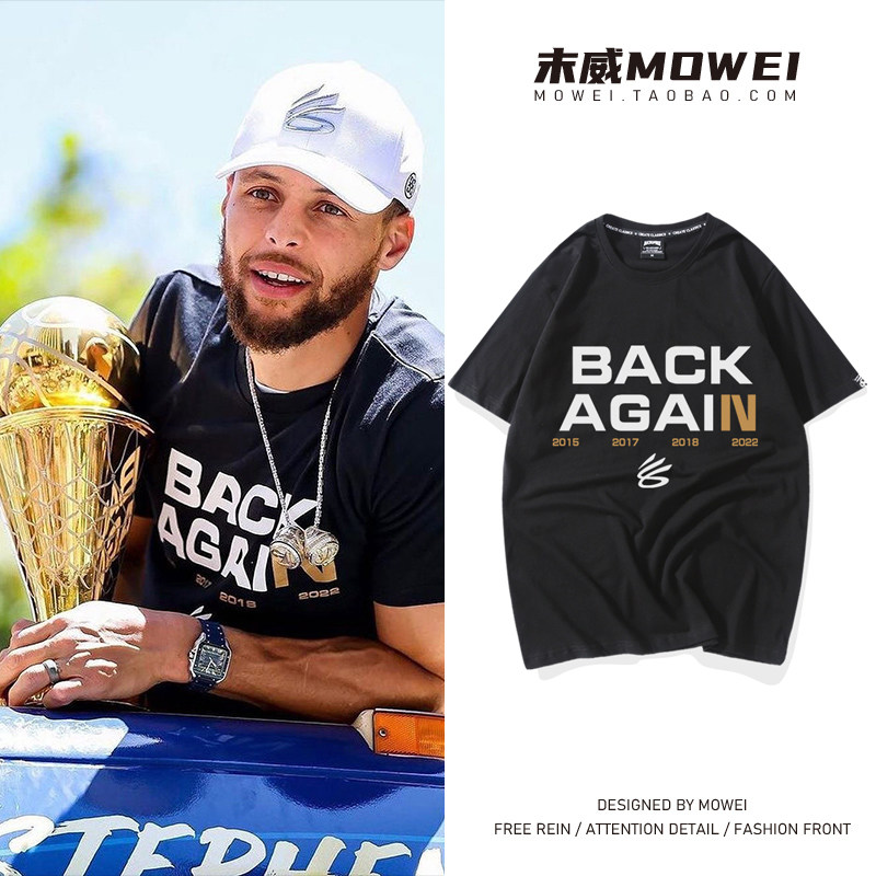 篮球运动纯棉半袖 库里t恤男2022勇士队总冠军游行Back again短袖