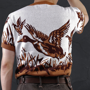 野鸭美式 T恤春夏男生非RRL 复古休闲咔叽凉感流行针织圆领全棉短袖
