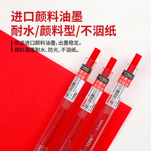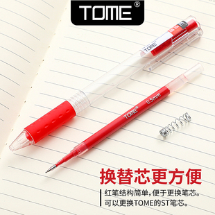 TOME红笔学生记重点改错笔红色水笔教师老师批改作业专用按动中性笔0.5mm按压式 高颜值走珠笔学生用做笔记