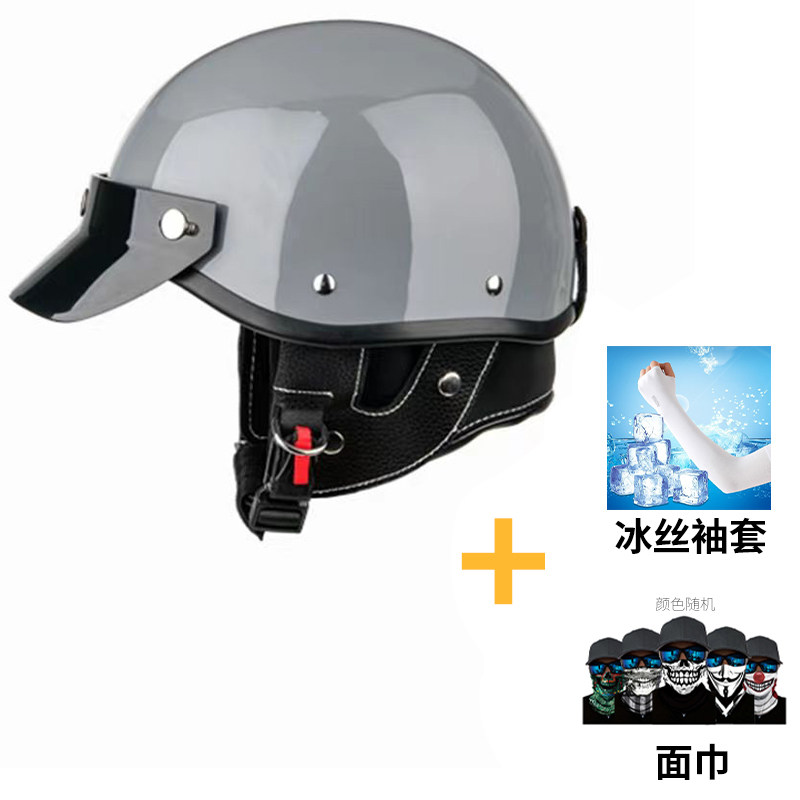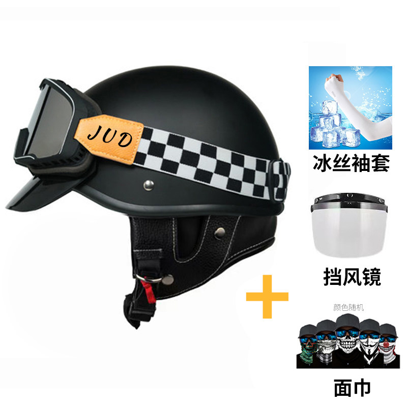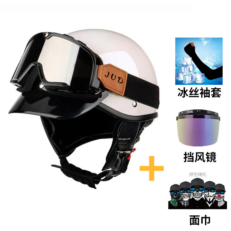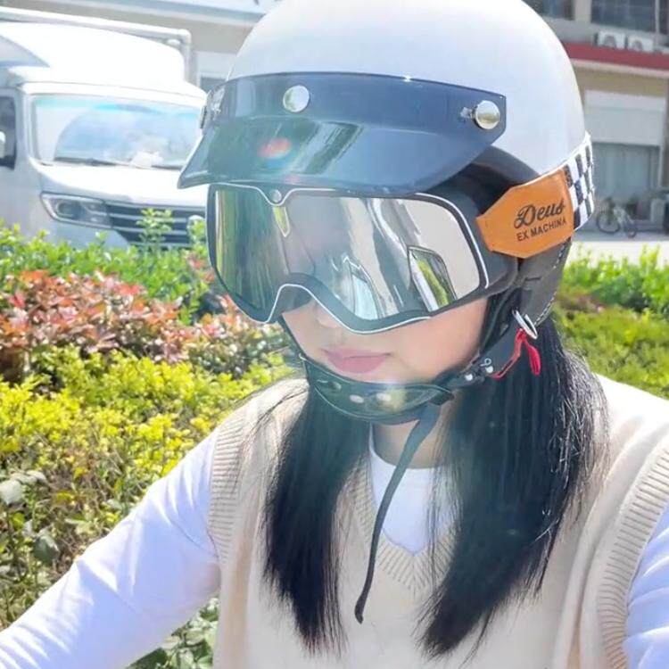 哈雷女士男摩托车电动车半盔机车 日式 DOT夏季 复古头盔3C认证四季