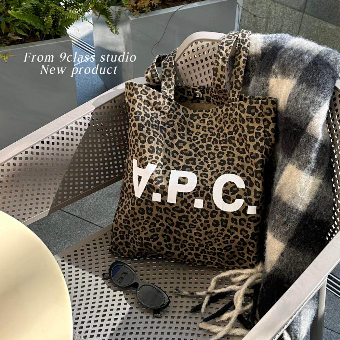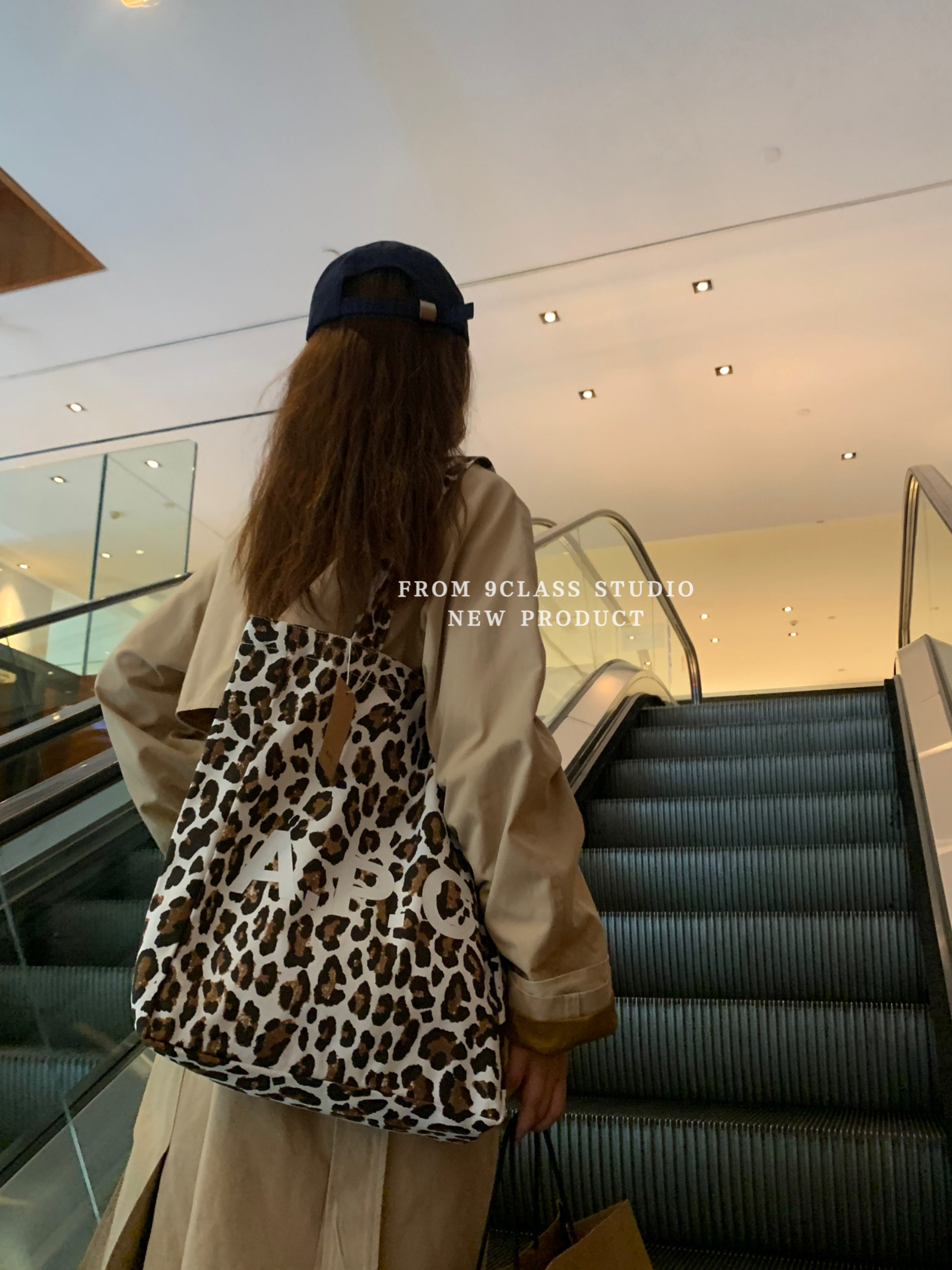 夏日百搭购物袋 APC字母豹纹通勤单肩帆布包 9class ins博主同款