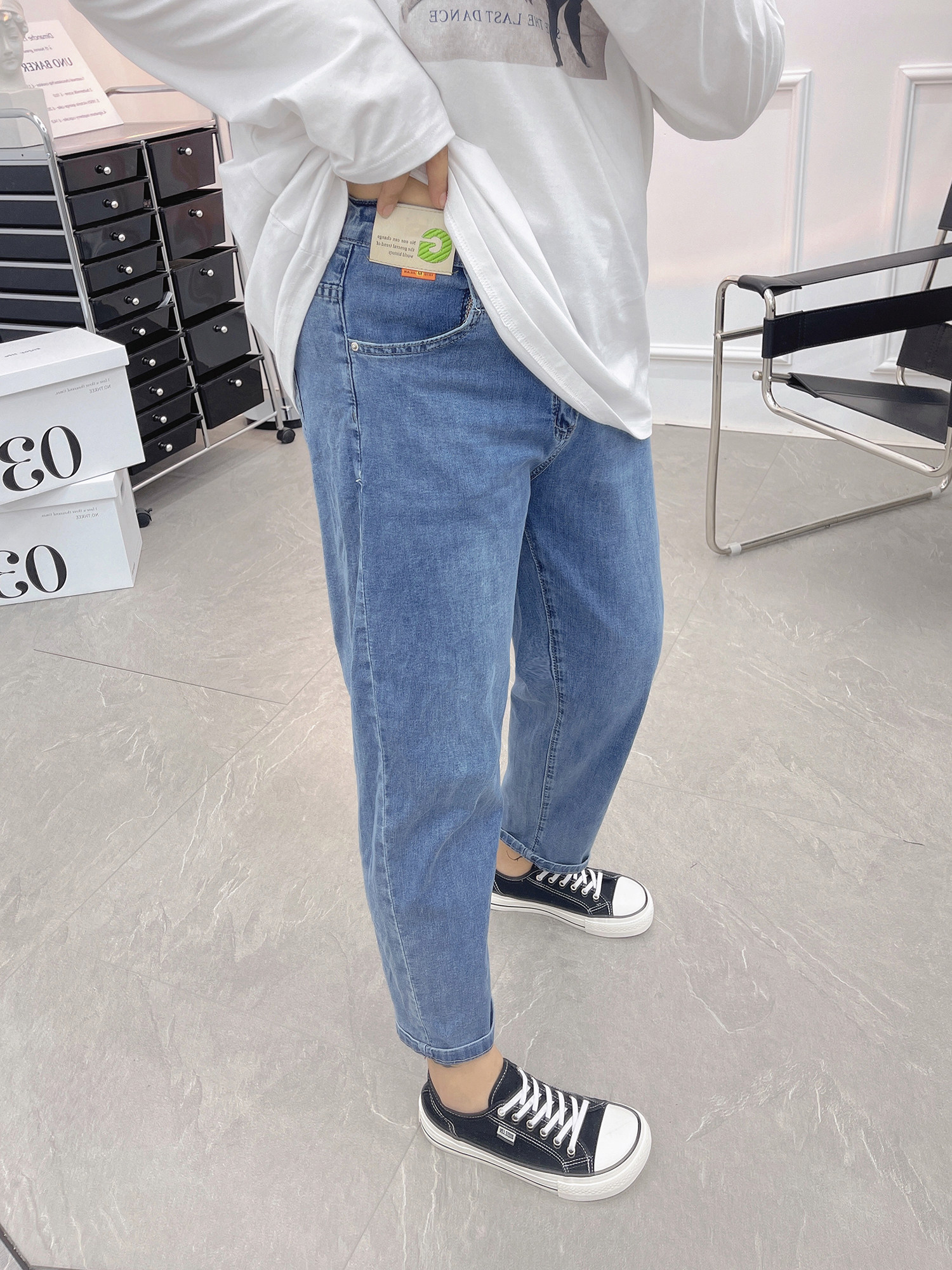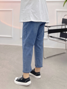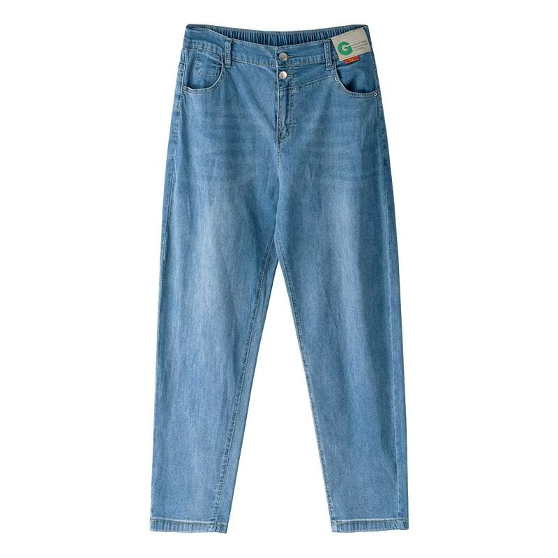 九分裤 胖mm大码 韩版 女春秋弹力高腰显瘦宽松百搭哈伦裤 子 蓝牛仔裤