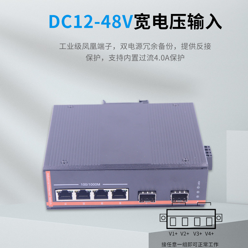 工业级光纤收发器 千兆SFP光纤交换机 1光2电2光4电4光8电8光口 汇聚级联串联 12V 锐闪 DC24V 导轨式