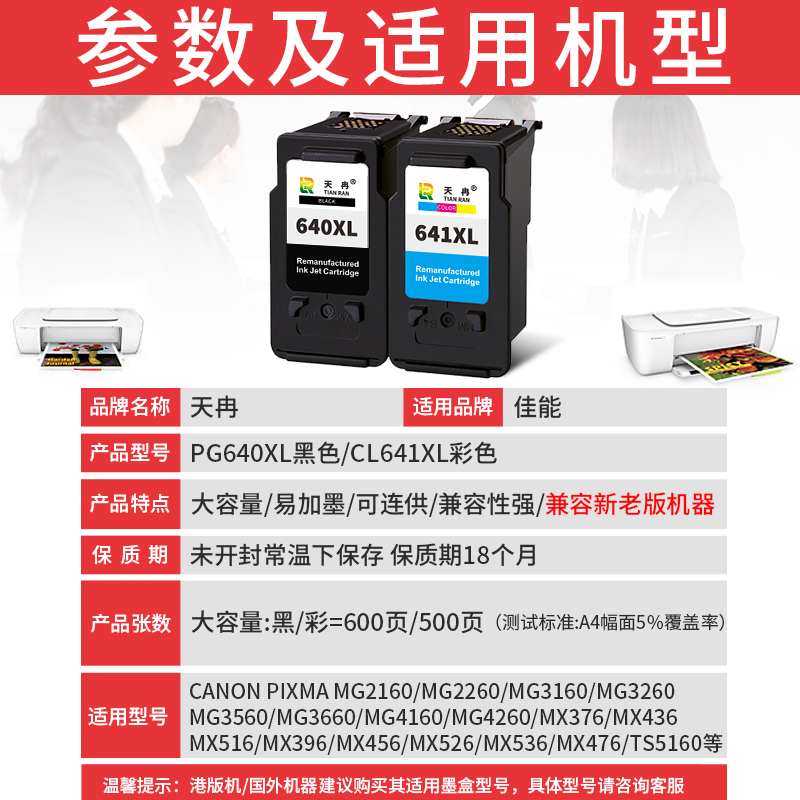 436 TS5160打印机大容量 4160 2260 3160 2160 3660 4260 476 天冉兼容佳能PG640 MX376 641XL墨盒连供MG3560