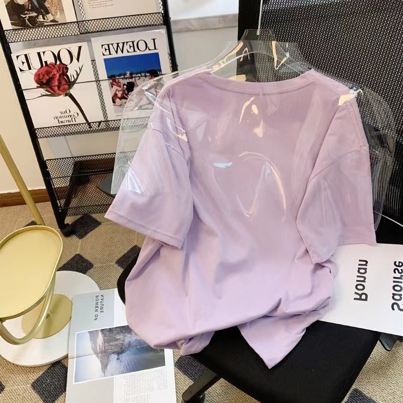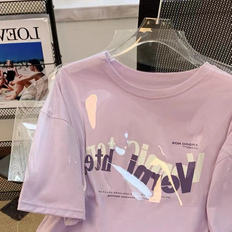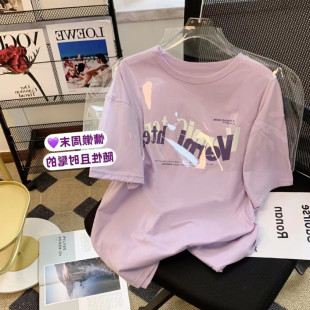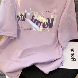 上衣 宽松百搭圆领体恤小衫 欧货香芋紫纯棉短袖 t恤女2025年夏新款