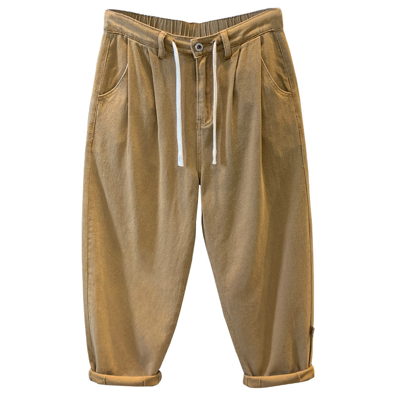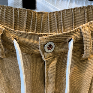 宽松直筒阔腿休闲长裤 复古棉籽壳白色牛仔裤 子男秋 轻美式 马登工装
