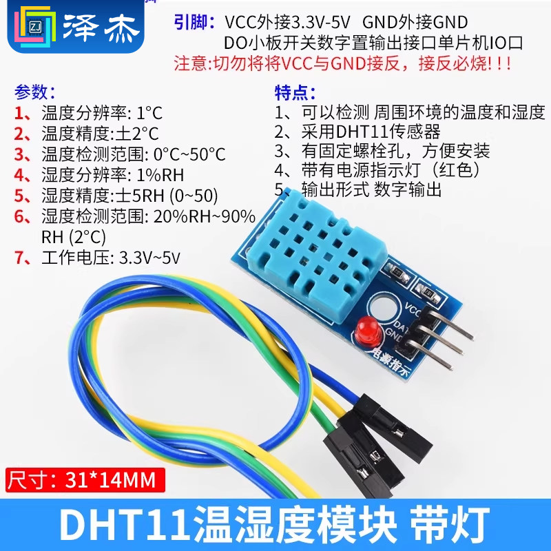 泽杰 AM2302电子积木 DHT11温湿度传感器模块 DHT22数字开关