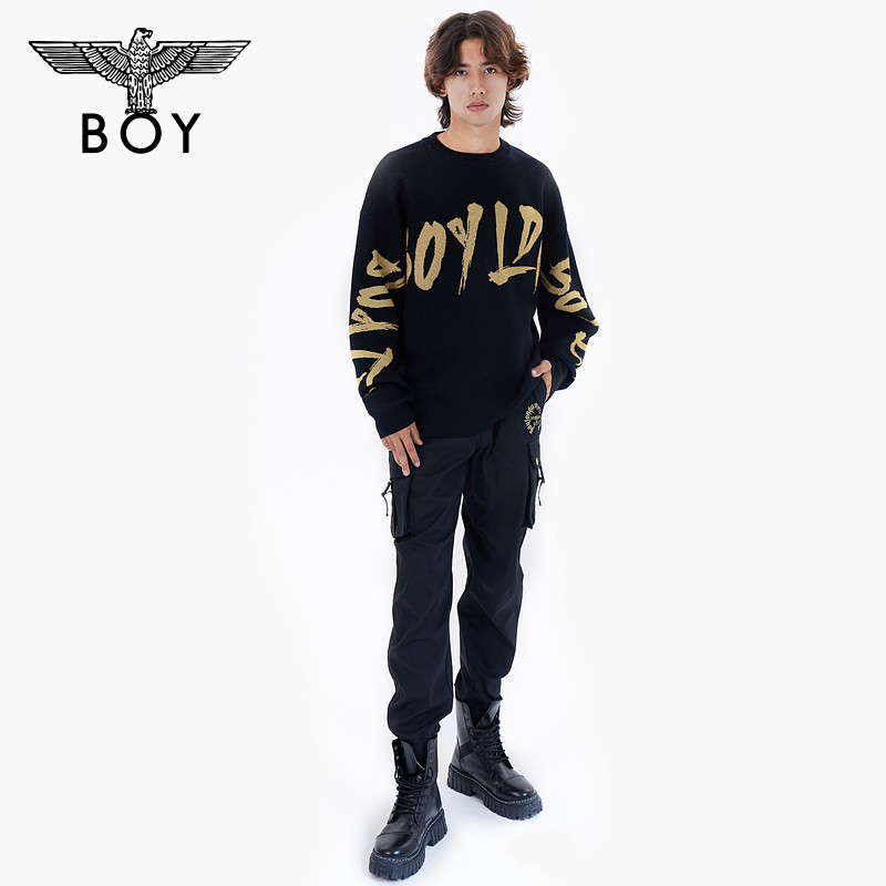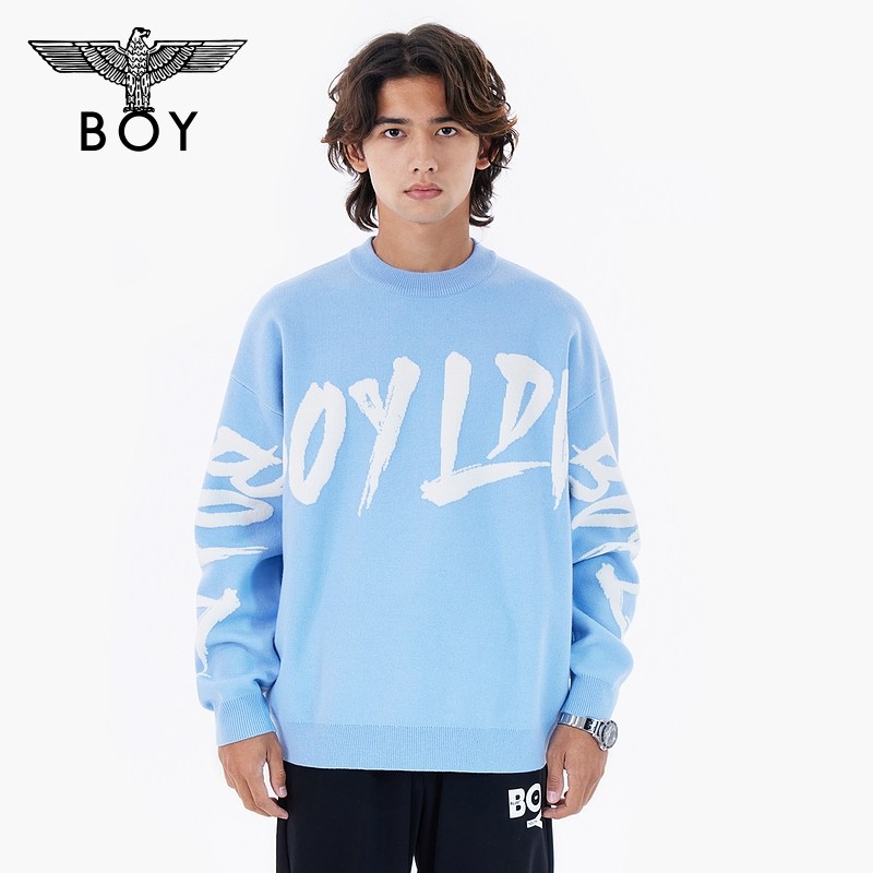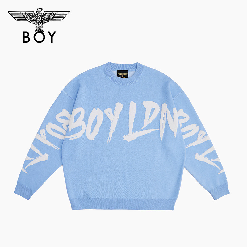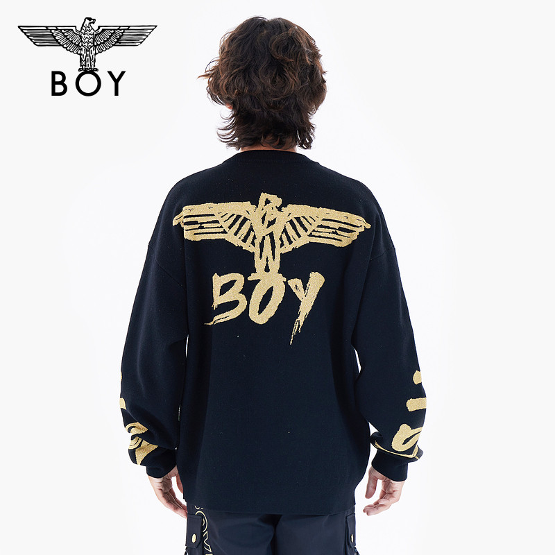 老鹰白色字母提花宽松长袖 针织衫 毛衣N60007 情侣款 BOYLONDON春季