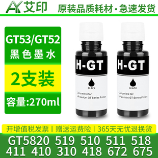 511 GT5820 51黑彩色连供墨盒原装 672 519 518 675 410 411 适用HP惠普打印机墨水tank510 310 GT53XL 418