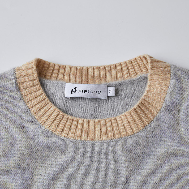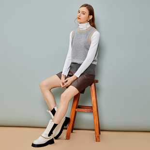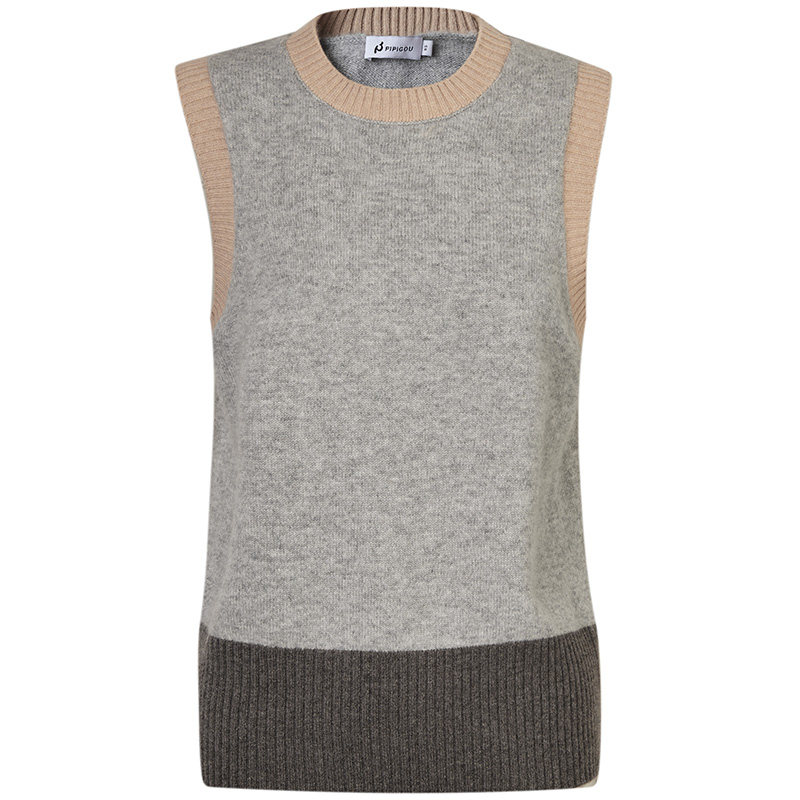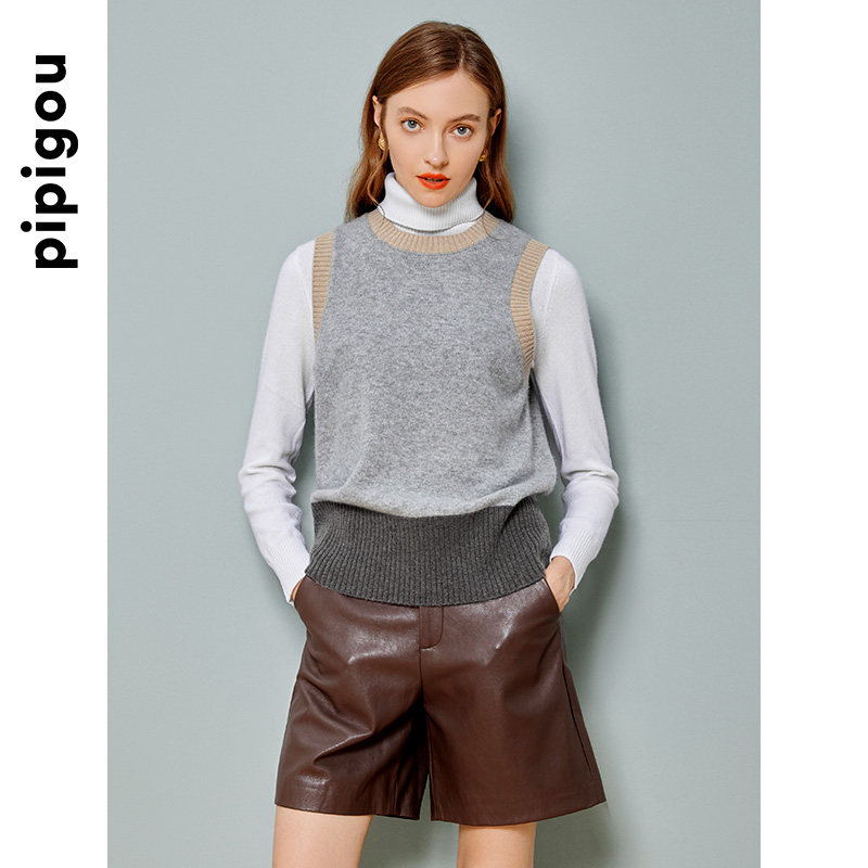 皮皮狗秋冬新款 圆领撞色女士针织纯羊绒背心