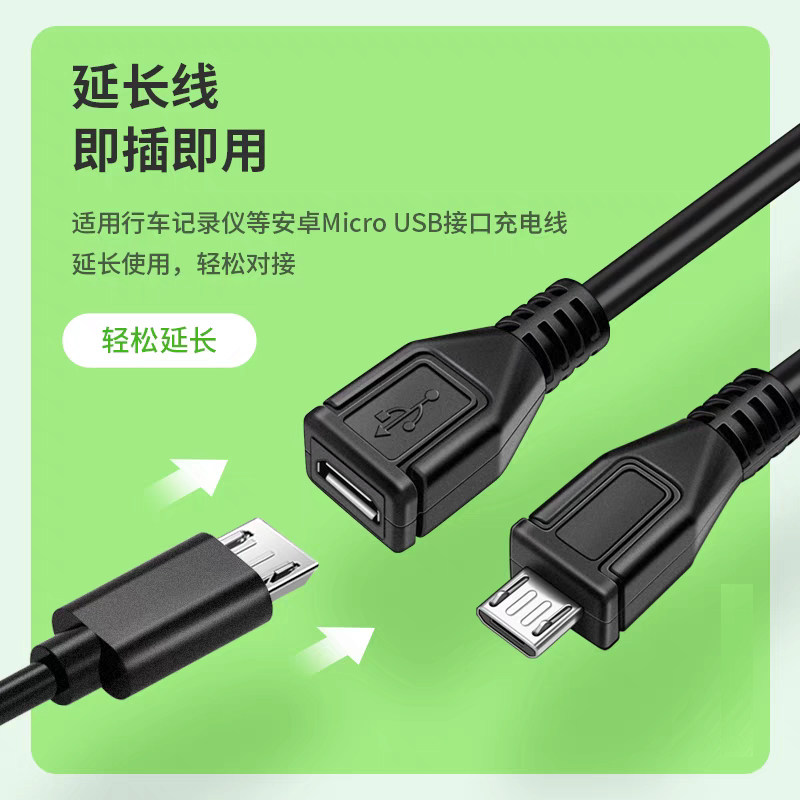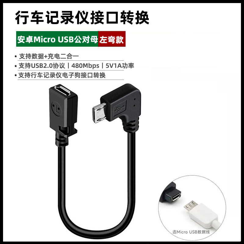安卓Micro USB公对母延长线90度弯头micro数据线电源充电线连接加长手机声卡车载行车记录仪公转母接口加长线