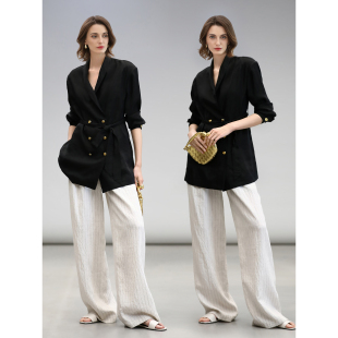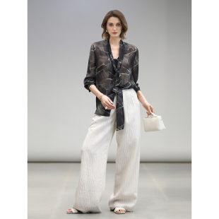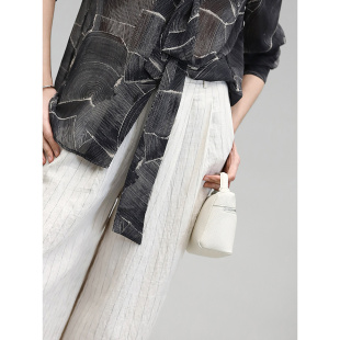 通勤白色休闲裤 COCOBELLA棉麻感色织条纹阔腿裤 PA7038 3件5折