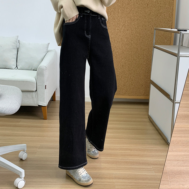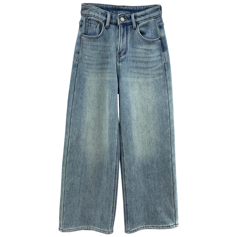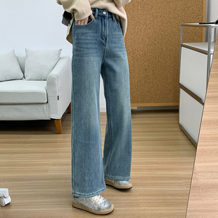 女秋冬 软糯加绒弹力宽松直筒牛仔裤 自留强推 2025年小个子阔腿裤