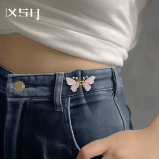 精致超仙水晶蝴蝶收腰神器牛仔裤 腰收紧调节胸针扣腰围改小配饰 裤