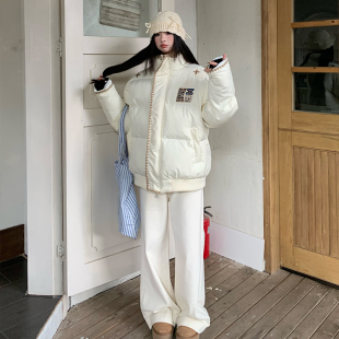 橘子树在哪儿复古高腰微喇白色牛仔裤 子 女春秋垂感宽松直筒阔腿裤