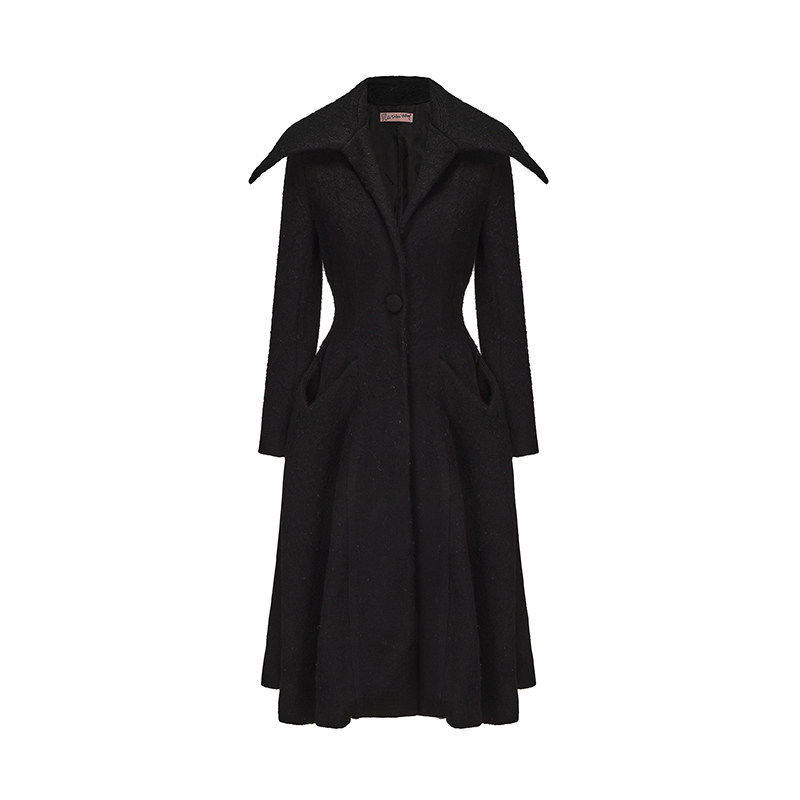 重工复古收腰50年代大裙摆黑色毛呢外套 vintage原创 palais