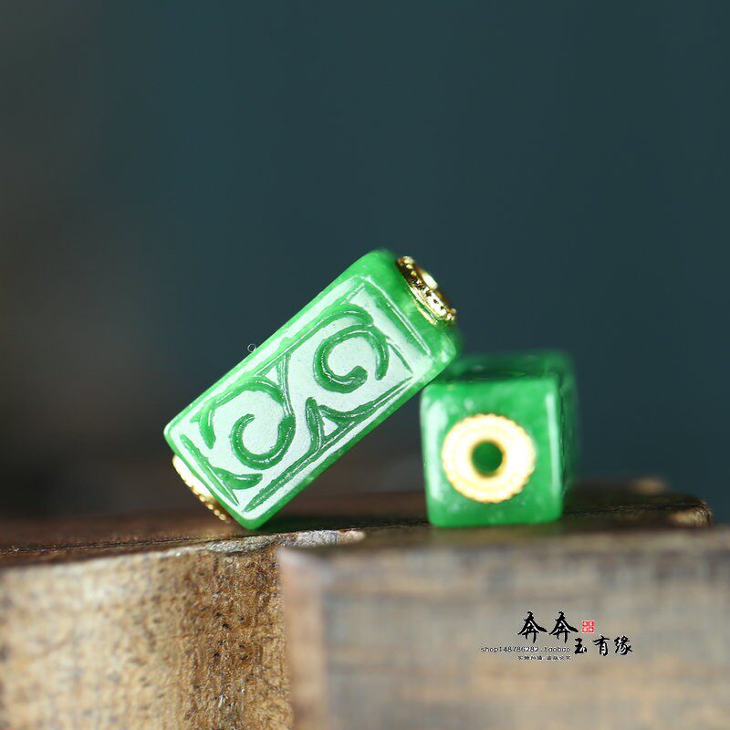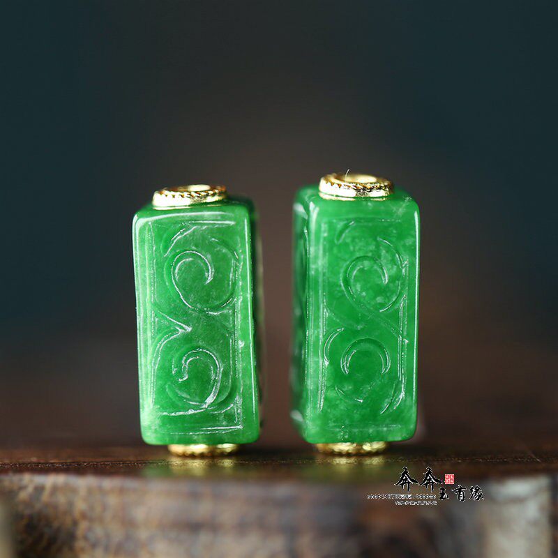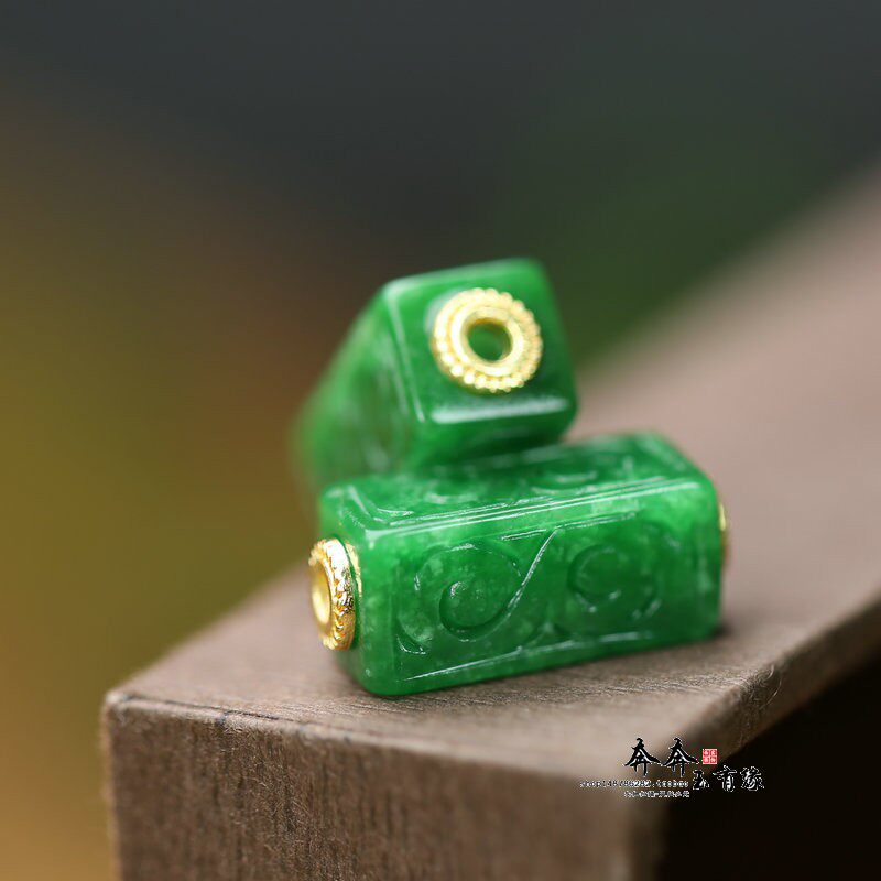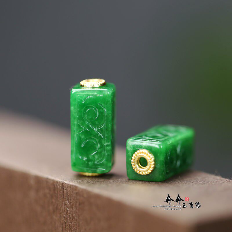 天然玉石干青翡翠雕花祥云方形桶珠镶嵌铜隔片DIY配饰手链手串A42